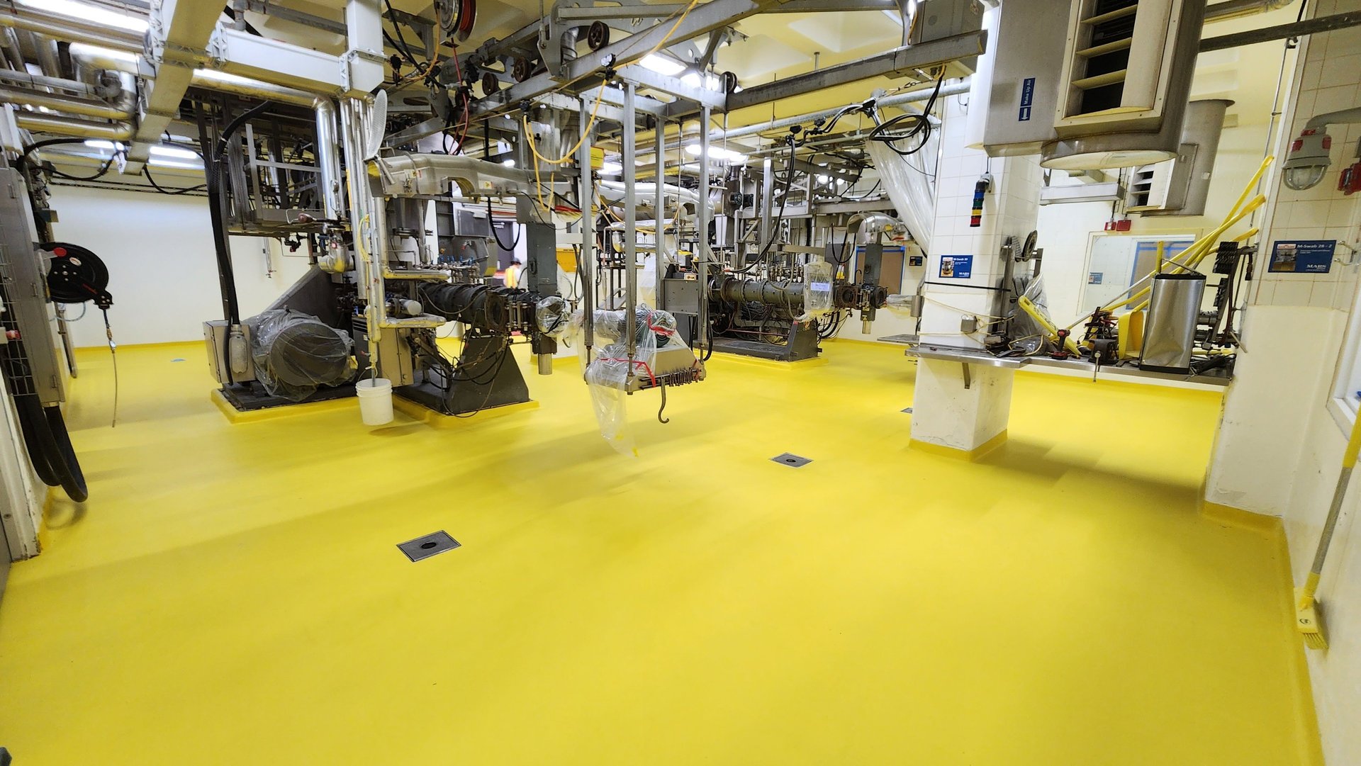 Durable, hygienic flooring systems for food processing production, and packaging environments.