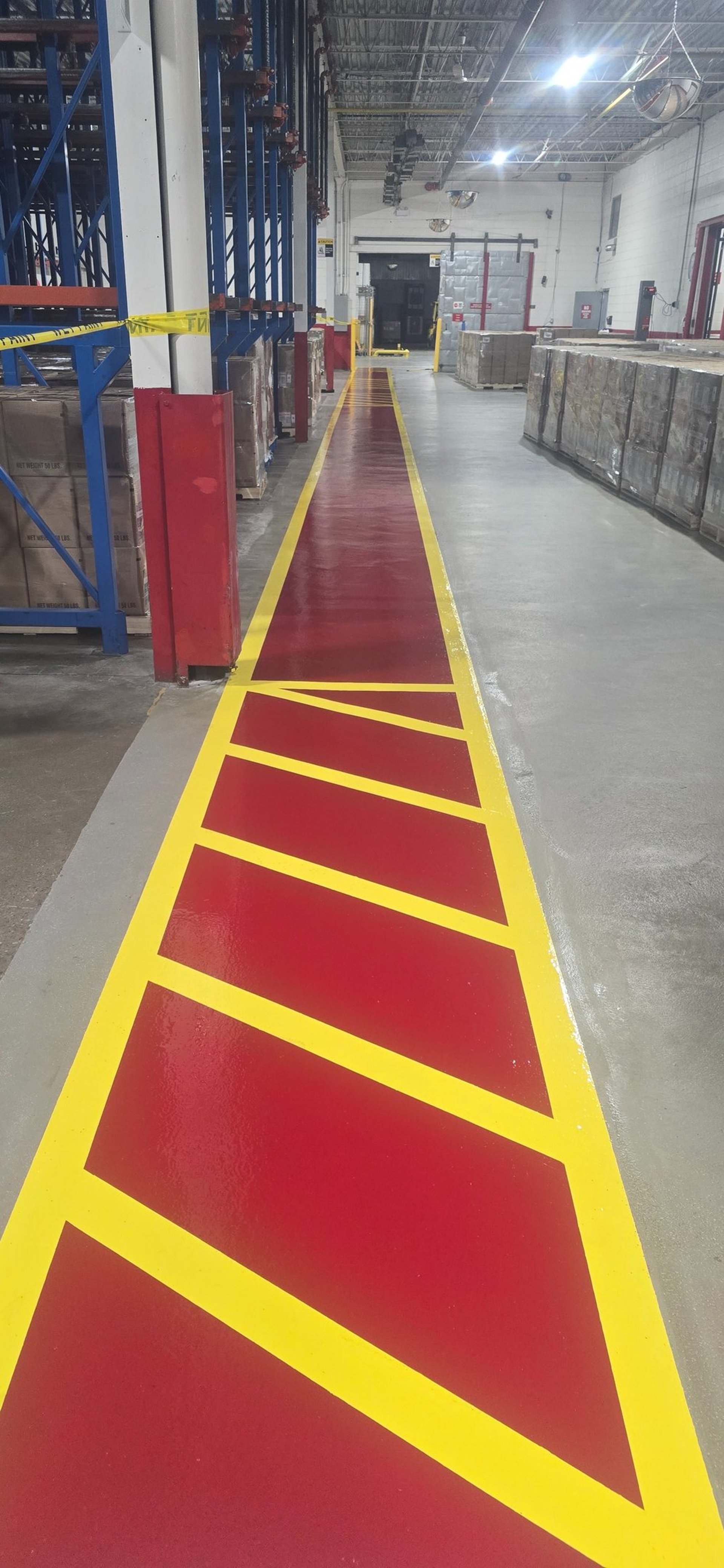 Using a standardized colour scheme for designated areas throughout a facility is a great asset to any facility safety program. With epoxy resins, Abate and Associates can help you design and install custom safety lines throughout your facility. Areas can be identified to allow forklift or pedestrian traffic using a colour code scheme that can be educated to the workforce through your safety programs.