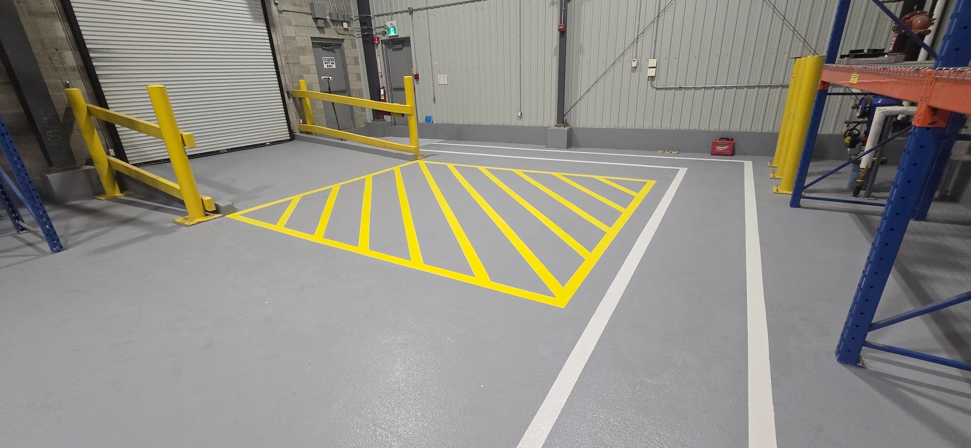 Using a standardized colour scheme for designated areas throughout a facility is a great asset to any facility safety program. With epoxy resins, Abate and Associates can help you design and install custom safety lines throughout your facility. Areas can be identified to allow forklift or pedestrian traffic using a colour code scheme that can be educated to the workforce through your safety programs.